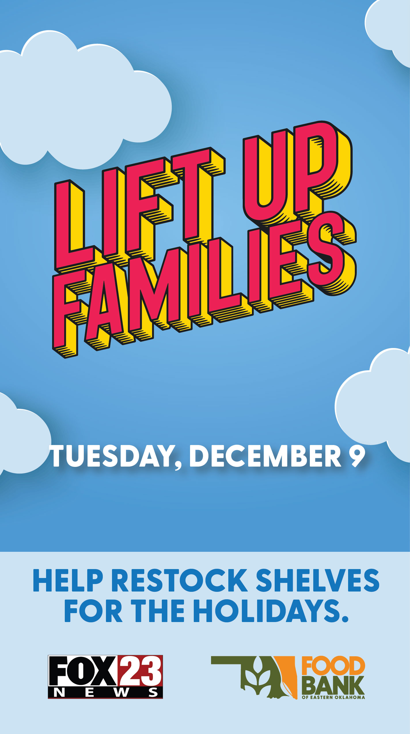 Tune in live on Fox 23 News and join us for "lift up families", a fundraising and awareness event that is helping The Food Bank of Eastern Oklahoma and our 600+ partner agencies restock our shelves after the SNAP funding freeze. The need is greater now more than ever, so join us for a fun-filled event that will help many of our neighbors in need.